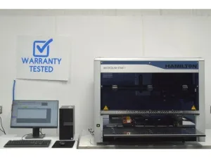 The Hamilton MICROLAB STARlet is a compact and versatile automated liquid handling workstation optimized for precision pipetting in molecular diagnostics, bioprocessing, and synthetic biology research. This system integrates a Span-8 eight-channel air displacement pipetting arm (1–1000 µL) alongside a 96-channel CO-RE pipetting head capable of handling volumes up to 1000 µL per channel, enabling high-throughput and flexible sample preparation workflows.