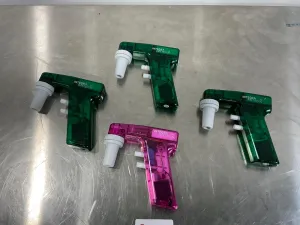 The INTEGRA Biosciences Pipetboy 2 is a handheld electronic pipette filler designed for precision liquid handling in molecular diagnostics and synthetic biology workflows. This set includes four devices—three green units and one pink unit—providing ergonomic control and reliable pipetting accuracy essential for bioprocessing and biomanufacturing tasks.