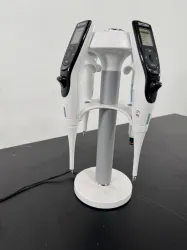 The INTEGRA Electronic Single Channel Pipettes provide precision and reliability essential for liquid handling tasks in molecular diagnostics, bioprocessing, and synthetic biology workflows. This set includes four electronically controlled single channel pipettes mounted on an ergonomic stand that facilitates organized storage and quick access.