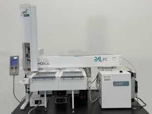 The CTC Analytics PAL RTC Liquid Handler is a Swiss-engineered automated platform delivering high-precision liquid handling essential for analytical chemistry, pharmaceutical development, and molecular diagnostics. Equipped with the HDx module, it enhances sample preparation throughput and process efficiency for complex protocols. The system includes dual thermal units with digital temperature displays, allowing precise temperature control critical for sensitive reagents and bioprocessing applications such as gene editing and synthetic biology workflows.
