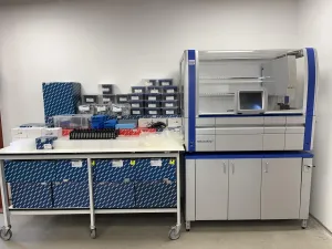 The Qiagen QIAsymphony Nucleic Acid Purification System, previously part of a university laboratory, is now available due to surplus. The unit is confirmed to power on and has undergone a series of maintenance checks, with all functions performing as expected. It was operational before decommissioning. The earliest maintenance was recorded in 2016, indicating an estimated manufacturing date around 2015-2016. Access credentials are available and the system is cosmetically well-maintained, with minimal wear. The equipment dimensions are L126 W84 H183cm, with internal storage of D66 W64 H54cm and an adjustable shelf. Accompanying the system are consumables, including various packs and boxes of filter-tips, sample prep cartridges, and accessory items such as DSP kits, 8-rod covers, RNA kits, and tube racks. The package also includes a barcode reader and miscellaneous spares, ensuring comprehensive support for laboratory applications.