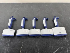 The Rainin Pipet-Lite XLS Multichannel Pipettes are precision liquid handling devices engineered for high-throughput laboratory workflows, widely adopted in molecular biology, drug discovery, and biotechnology research. This set includes five multichannel pipettes, enabling simultaneous aspiration and dispensing across multiple wells, enhancing throughput and reproducibility in applications such as microplate assays and gene editing workflows.