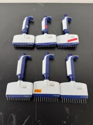 The Rainin Pipet-Lite XLS Multichannel Pipettes set includes six high-performance multichannel pipettes engineered for precise and efficient liquid handling in molecular biology and biotechnology research. These pipettes feature an ergonomic design that reduces user fatigue during repetitive pipetting tasks, making them ideal for applications such as gene editing, synthetic biology, and bioprocessing workflows.