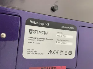 The STEMCELL Technologies RoboSep-S is an automated cell separator utilizing immunomagnetic separation technology for efficient isolation of specific cell populations. Designed specifically for advanced biotechnology and molecular diagnostics, this system integrates a magnetic separation module and an automated pipetting module within a compact footprint (15.5 x 14 x 18 inches).