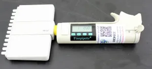 The Thermo Labsystems Finnpipette 300-12 is a 12-channel digital multichannel pipette engineered for precise and efficient liquid handling in biotechnology laboratories. It features a universal ergonomic handle and a recharger stand (stand adapter included; power cord not included) to support extended pipetting workflows in molecular biology, synthetic biology, and bioprocessing applications.