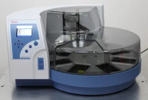 The Thermo KingFisher Flex Purification System (model 5400610) from Finland provides versatile automated magnetic-particle processing designed for DNA/RNA, protein, and cell purification.