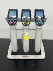 The Thermo Scientific E1-ClipTip Electronic Equalizers and Stand enable precise electronic control for pipetting tasks, essential in molecular diagnostics and biotechnology workflows. Featuring an ergonomic design, these electronic pipette equalizers reduce user fatigue during high-throughput liquid handling. The included stand supports simultaneous accommodation of three pipettes, promoting organized bench space and easy access to pipetting tools critical for bioprocessing and gene editing applications. This setup is widely adopted among molecular biology researchers requiring consistent volume delivery and efficient workflow in synthetic biology and biomanufacturing environments.