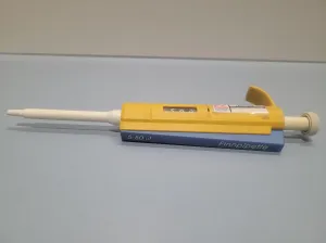 The Thermo Scientific Electron Finnpipette is a versatile and reliable laboratory pipette designed for precise liquid handling. With a variable volume range of 5-50µl and 0.5µl increments, it ensures accurate and repeatable pipetting. Although not currently calibrated, preliminary tests using a 10-4 g (0.1 mg) balance showed a consistent reading of 0.050 g for 50 µl, making it suitable for various precision applications.