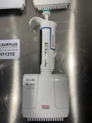 Compatible with standard multichannel pipette tips, the Finnpipette F1 models enable efficient parallel sample processing, making them widely adopted in high-throughput molecular cloning and fluorescence analysis labs. Unique serial numbers (PH66218, QH52533, OH32032, QH62731, 7062276) ensure traceability and instrument management in regulated research environments.