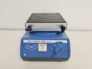 The IKA Vibrax VXR Basic Orbital Shaker was sourced from a university lab where it was no longer needed. This unit reliably powers up and operates in good working order, meeting laboratory mixing and agitation requirements. Its cosmetic condition is well-maintained, with only minor marks. Ideal for facilitating efficient sample preparation and laboratory processes, this orbital shaker is ready for immediate use.