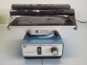 The IKA Vibrax VXR is a precision laboratory shaker equipped with the VX8 2-bar tray, designed for efficient and versatile mixing applications. It operates at a speed range of 0 to 2400 revolutions per minute, making it suitable for a variety of laboratory tasks. With a power supply of 220-250V and a frequency of 50-60Hz, this shaker provides consistent performance. The compact dimensions of 23 x 20 x 27 cm ensure it fits comfortably in most laboratory settings, while consuming only 38 watts of power, ensuring energy efficiency.