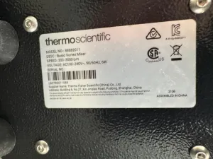 The Thermo Scientific Basic Vortex Mixer Model 88882011 is a precision benchtop vortex mixer designed for efficient mixing of biological, chemical, and biotechnological samples. Featuring an adjustable speed control up to 3000 rpm and a digital speed display, it allows precise optimization of mixing parameters for different sample volumes and viscosities. This vortex mixer supports workflows in molecular diagnostics, bioprocessing, and cell biology, making it essential for biotechnology laboratories, clinical diagnostics, and synthetic biology research. Its compact design and reliable motor provide consistent vortexing action, critical for applications such as enzyme reactions, gene editing sample preparation, and mixing of reagents in molecular cloning workflows. Widely adopted in laboratories requiring precise and reproducible sample agitation.