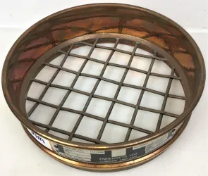 This kit includes seven 8-inch diameter brass frame sieves with brass cloth, designed for precise particle measurement across multiple industries including agricultural, bio, chemical, cosmetics, industrial, fertilizer, food, mineral, pharmaceutical, plastics, and metal products.