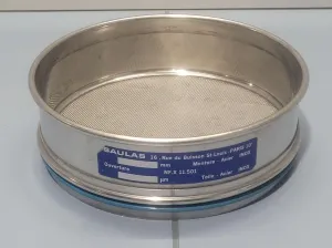 The SAULAS Stainless Steel Test Sieve, measuring 200x50mm with a 630 µm porosity, is a precision instrument designed for particle size analysis. Constructed with a durable stainless steel frame, it offers robust performance for reliable granulometry testing. Its dimensions include a 200mm external diameter and a 50 mm height, ensuring compatibility with a variety of sample sizes. This test sieve is RETSCH compatible, enhancing its versatility and integration into existing laboratory systems. Additionally, it comes equipped with a seal to ensure complete integrity during testing procedures.