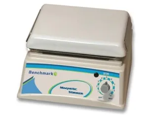 Benchmark Analog Magnetic Stirrer Benchmark stirrers feature an exceptionally durable, chemical resistant white ceramic work surface. Their space-efficient design (8 x 9 in. footprint), makes them ideal for use on crowded benchtops and inside of bio-hoods.