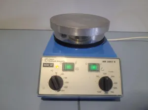 The Fisher BioBlock Scientific MR 3001 K magnetic stirrer with heating element is a versatile benchtop device designed for precise temperature control and stirring in biotechnology, molecular diagnostics, and chemical research applications. It operates at 230 V, consumes 825 W, and supports a stirrer rotation speed range of 100 to 1250 rpm. The integrated heating plate measures 14.5 cm in diameter, capable of temperatures from ambient to 300°C, allowing for controlled heating during bioprocessing and synthetic biology workflows. This temperature-controlled magnetic stirrer is essential for applications such as reagent mixing, solution preparation, and live-cell imaging sample processing where uniform stirring and consistent heating are critical. Widely used in clinical diagnostics and molecular cloning laboratories, the MR 3001 K model supports robust experimental protocols requiring simultaneous magnetic stirring and heating.