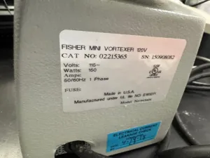 The Fisher Scientific Model 945404 Vortex Mixer is a precision benchtop laboratory instrument optimized for consistent mixing of small-volume liquid samples. Equipped with a variable speed control knob and a straightforward on/off switch, it offers adjustable agitation suitable for diverse applications in molecular biology, bioprocessing, and synthetic biology research. This unit operates on a single-phase 115 V, 50/60 Hz electrical supply with a power consumption of 150 W, providing reliable performance in molecular diagnostic workflows and biomanufacturing processes.