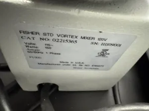 The Fisher Scientific Model 945404 Vortex Mixer is a reliable laboratory instrument engineered for efficient sample mixing, widely used in molecular biology, biotechnology, and clinical diagnostics. Featuring a variable speed control knob, it allows precise adjustment to optimize mixing for different sample viscosities and volumes. The device includes a rubber mixing platform that securely holds tubes and vessels during operation, ensuring consistent vortex action.