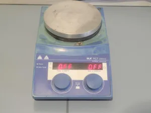 The IKA RCT Classic Safety Control is a heated magnetic stirrer designed to provide precise and reliable mixing for laboratory applications. Featuring an aluminum alloy plate, it offers speed control ranging from 50 to 1200 RPM, with an infinitely variable setting. Its top plate measures 135mm in diameter and can reach a maximum temperature of 300°C, ensuring efficient heating. The sturdy unit delivers 600W of power and can handle a maximum stirring capacity of up to 20 liters of water. Despite some aesthetic imperfections, such as stains and peeling paint on the plastics, it remains in good working condition. It comes with a power cable but does not include a probe. Dimensions are 160×270×85 mm, and it weighs 2.45 kg.