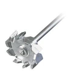 Heidolph 036300390 Overhead Stirrer Impeller, TR 21 Radial Flow Due to the jagged shape of the stirrer blade, the radial flow impeller TR 21 is ideally suited for the construction of emulsions and the gassing or foaming of liquids in vessels with the following characteristics: ideal vessel diameter: 143-250 mm, ideal ground clearance: 25-50 mm, ideal filling level: 143-250 mm, and ideal volume: 2,300-12,300 ml. The radial-flow impeller TR 21 has a total length of 400 mm and is made of stainless steel. Its stirrer shaft has a diameter of 8 mm.
