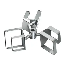 Heidolph 036300506 Overhead Stirrer Visco Jet Crack Impeller, 120mm (Stainless Steel) Particularly in the case of applications with very viscous media such as pastes and gels, a very reliable stirring process in the entire vessel without air entry is important. This is what the innovative stirring system VISCO JET® offers. The shape of the blades triggers an intrinsically dynamic flow, which shortens the process times with significantly better mixing results compared to conventional impellers. An all-rounder for aqueous and highly viscous substances. The VISCO JET® Crack 120 is ideal for vessels with the following characteristics: ideal vessel diameter: 200-300 mm, ideal ground clearance: 36 mm, ideal filling level: 200-300 mm, and ideal volume: 6,300-21,200 ml. The VISCO JET® Crack 120 is made of stainless steel. A stirrer shaft with a diameter of 10 mm is included in the scope of delivery.