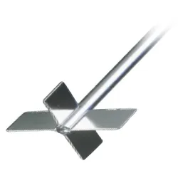 Heidolph 036304390 Overhead Stirrer Impeller, BR 10 Cross-Blade Due to its blade dimensions, the cross-blade impeller BR 10 is ideally suited for solutions, emulsions and suspensions in vessels with the following characteristics: ideal vessel diameter: 100 mm, ideal ground clearance: 5 mm, ideal filling level: 100 mm, and ideal volume: 800 ml. The cross-blade impeller BR 10 has a total length of 400 mm and is made of stainless steel. Its stirring shaft has a diameter of 8 mm.