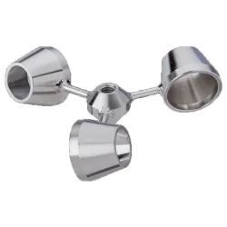 Heidolph Overhead Stirrer Visco Jet Impeller inoJET-120mmParticularly in the case of applications with very viscousmedia such as pastes and gels, a very reliable stirring process in the entirevessel without air entry is important. This is what the innovative stirringsystem VISCO JET® offers!The particular shape of the blades triggers an intrinsicallydynamic flow, which shortens the process times with significantly better mixingresults compared to conventional impellers. An all-rounder for aqueous andhighly viscous substances. The VISCO JET® 120 is ideal for vessels with thefollowing characteristics: