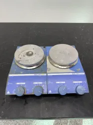 The IKA RCT Basic Hotplate/Stirrers consist of dual heating and magnetic stirring plates designed for precise mixing and heating in laboratory workflows. Each unit operates at a power rating of 620 W with stirring speeds adjustable up to 1100 RPM, enabling controlled agitation for various chemical synthesis, sample preparation, and general laboratory applications.