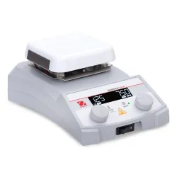 Ohaus Guardian 3000 e-G31HS04C Hotplate Stirrer, 115V The Ohaus Guardian 3000 Series Hotplate Stirrers are designed for economical heating and stirring in all laboratory settings. The bright LCD display includes easy-to-read temperature and speed settings, intuitive icons and a prominent hot top indicator that lights up when the heater is above 40°C. Select from three plate sizes to suit your application. All models can be used with the optional temperature probe for precise temperature control of the sample.