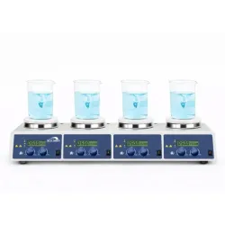 This multi-channel hotplate stirrer is widely adopted in biotechnology research and is essential for molecular cloning workflows and biopharmaceutical production pipelines requiring precise, simultaneous heating and stirring control across multiple samples.