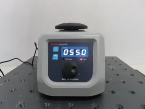 The Thermo Scientific 88882011 Basic Vortex Mixer is a precision benchtop vortexer designed for efficient and consistent mixing of laboratory samples. Operating at a maximum speed of 3000 RPM, it accommodates various tube sizes, ensuring versatility across molecular biology, biochemical assays, and analytical research workflows. This vortex mixer features an ergonomic design that promotes user comfort during extended use, making it suitable for routine mixing tasks in clinical diagnostics, synthetic biology, and bioprocessing laboratories.
