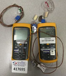 The Fluke 54 II is a battery-operated handheld thermometer optimized for precise temperature measurements using Type T thermocouple probes, widely adopted in molecular diagnostics, bioprocessing, and biotechnology applications requiring accurate thermal monitoring. This lot includes two identical units along with multiple Type T probes, ensuring reliable and repeatable measurements critical in biomedical engineering and synthetic biology research.