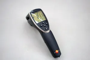 The Testo 845 is a compact infrared thermometer designed for non-contact surface temperature measurement. It features switchable optics to enable precise temperature readings at both close range and far distances.