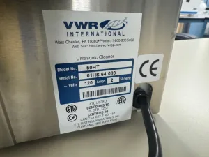 The VWR Model 50HT Ultrasonic Bath is a precision laboratory ultrasonic cleaner engineered for reliable and consistent ultrasonic cleaning applications. Operating at 120 volts, 60 Hz, and drawing 2 amps, this benchtop ultrasonic equipment features a stainless steel tank with a Teflon-lined tank top designed for chemical resistance and durability in demanding laboratory environments.