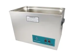 The Crest P2600HT-45 Digital Ultrasonic Cleaner is a high-performance cleaning unit designed to deliver exceptional results. Operating at an ultrasonic frequency of approximately 45 kHz, it features ceramically enhanced transducer technology with industrial bonded assembly to ensure a homogenous sound field and effective energy distribution. The unit is equipped with a digital control and display, allowing precise adjustment of the cleaning time from 1 to 99 minutes, or continuous operation. The integrated heater allows the liquid temperature to be adjusted in 1K increments up to 80°C. The deep-drawn stainless steel cleaning tank, with rounded corners, facilitates easy maintenance, while the intrinsically safe heater includes dry-run protection for safe operation. With a substantial tank capacity of 7 gallons (26.1 liters) and an average ultrasonic power of 300 watts, this cleaner is ideal for extensive cleaning applications. Additionally, it includes a drain valve assembly for tanks with capacities of 2.5 gallons or more, enhancing usability and efficiency.