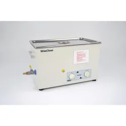 The Witeg Wisd WiseClean WUC A22H Ultrasonic Cleaner is engineered for use in chemical, biological, medical, and pharmaceutical settings. This device boasts a straightforward design and extended longevity. Utilizing ultrasonic sound, which operates at frequencies typically inaudible to humans, the cleaner effectively cleans various materials and parts. The cleaning process involves sound waves from the transducer radiating through the tank solution, causing alternating high and low pressures, a phenomenon known as cavitation. During low pressure, millions of microscopic bubbles form and grow; during high pressure, these bubbles implode, releasing significant energy and functioning like a myriad of tiny scrub brushes to cleanse every surface, recess, and opening comprehensively.