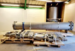The Large VacGen Vacuum Tank and Beam Tube comes equipped with VAT Gate Valves, previously owned by a university as surplus equipment. Confirmed by the lab to be in excellent functional condition, this apparatus has been maintained in a clean room laboratory throughout its service. The vacuum tank features dimensions of 136 cm (L) x 126 cm (W) x 260 cm (H), and includes six openings: three at 65 cm x 65 cm, two at 10 cm x 10 cm, and one at 15 cm x 15 cm. Meanwhile, the beam tube has dimensions of 450 cm (L) x 81 cm (W) x 81 cm (H) with an additional opening measuring 65 cm x 65 cm. The set includes two gate valves with dimensions of 100 cm (L) x 24 cm (W) x 183 cm (H) and opening dimensions of 65 cm x 65 cm, each fitted with SMC Solenoid Valves, Model VF3143. Note: Three studs have been broken off in one of the gate valves.
