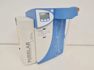 The ELGA PURELAB Ultra ULXXXIOM2 MK2 Water Purifier is a highly efficient laboratory-grade purification system, ensuring the highest quality of pure water essential for rigorous research demands. This unit was previously utilized in a university laboratory and is now available from surplus, maintaining its good cosmetic condition. It successfully powers on and was reported to be functional before removal. The package includes two Elga LabPure S1 Cartridges, ensuring you have everything necessary for immediate setup and operation.