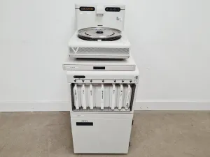The Ventana Discovery Model 750-200 Slide Staining System, formerly used in a university laboratory, is offered here as a spares/repairs item. It was not subjected to performance testing due to its failure in the visual portable appliance testing (PAT) resulting from a missing back panel. The equipment remains in reasonably good cosmetic condition, showing only minor marks. Accessories included are a Discovery 10X EZ prep solution (expired 28/12/2018), seven reagent bottle modules, two manifolds, and one converter. Note: the waste module is missing.