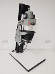 The Omega Pro-Lab 4X5 Darkroom Enlarger is a reliable piece of equipment previously used in a university laboratory. It is in reasonably good cosmetic condition and powers up successfully, although further testing was not conducted at our facility. This unit is equipped with a European plug and appears to have been converted to operate at 240V, despite the information plate still indicating 120V.