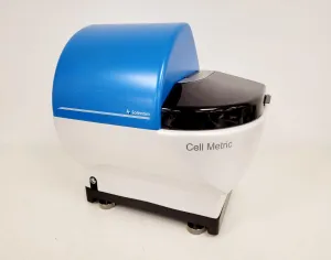 The Solentim Cell Metric Cell Imaging and Analysis Instrument, previously surplus from a university lab, is available for purchase. This unit is operational and in good cosmetic condition, showcasing only a minor scratch on the front surface. Included with the instrument is the Power Supply Unit (PSU). This equipment provides high-precision measurement capabilities, ideal for research requiring detailed cellular analysis and imaging.