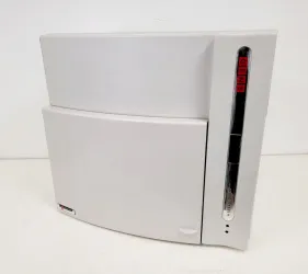 The Syngene GeneGenius Bio Imaging System, Model GV2M20, is an advanced gel documentation system designed for accurate bio imaging in research laboratories. Originally surplus to requirements from a university lab, the device powers on and is operational, although the camera's functionalities remain untested due to the absence of accompanying software. The unit presents a good cosmetic condition with minimal wear. This system includes a darkroom and a transilluminator, providing comprehensive support for various imaging tasks.