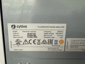 The Cytiva Amersham Typhoon Fluorescent Image Analyzer is a high-performance imaging system optimized for sensitive detection and quantitative analysis of fluorescent biomolecules. Ideal for applications in molecular diagnostics, synthetic biology, and bioprocessing, it supports a wide voltage input range of 100–240 V with a frequency of 50/60 Hz, ensuring compatibility across diverse laboratory environments. The system features advanced imaging technology combined with the Amersham Eraser accessory, enhancing signal clarity and image quality critical for fluorescence analysis and live-cell imaging workflows. With protection class IP21, it provides standard environmental safety for laboratory use. This unit, manufactured in 2020 (Serial No. 07050796), is widely adopted in biotechnology fields including gene editing and molecular cloning workflows, and is essential for high-resolution biomolecular imaging and fluorescence scanning in biopharmaceutical production pipelines.