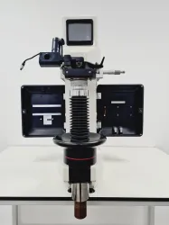 The INDENTEC 5030SKV Hardness Testing Machine, previously utilized in a university lab, now available for spares or repair, remains in excellent cosmetic condition. It powers on successfully, though it displays an error message: "Check Lead," hindering its operational use. This model is perfect for specialists seeking repair opportunities or spare parts. Included with the machine are a Calibration Certificate, User Manual, and Optic Head, offering a well-rounded package for lab professionals.