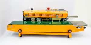 The JORESTECH E-CBS-630D is a semi-automatic continuous band sealer designed for sealing a variety of heat-sealable bags including PE, BOPP, PVC, PU, Bo PET, Cello, and laminated bags. It features: