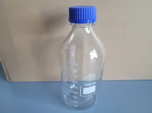 The Simax Reagent Bottle features a 1000 ml capacity and comes in a pack of 10. Crafted from borosilicate glass, it ensures durability and chemical resistance. The graduated design allows precise measurement, and it adheres to ISO 4796 standards with a DIN GL45 screw thread for secure closure. Each unit includes a PP pouring ring and cap, sterilisable up to 140ºC, making it ideal for laboratory storage. A total of 23 packs are available, each containing 10 bottles. Comes in the original box for safe delivery.