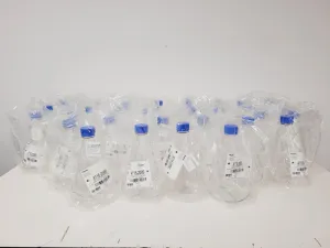 This set includes 34 brand new Thermo Scientific 2000ml Disposable Erlenmeyer Flasks, model 4116-2000, crafted from PETG with a blue vented closure. Each flask is individually sealed, ensuring they are ready for immediate use in laboratory settings. With lot number 1334359, these baffled flasks are ideal for a variety of applications including cell culture and bioprocessing.