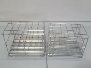 Two stainless steel laboratory racks designed to hold 24 test tubes each. Suitable for test tubes with a diameter of 20 or 21 mm, these durable racks ensure a stable and organized test tube arrangement. Ideal for a precise and efficient laboratory workflow.