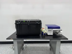 Included accessories are reagent and waste bottles, a durable transport case with foam interior, and appropriately rated power and data cables. Manufactured in Thailand, this loader supports biotechnology applications such as gene editing sample preparation, synthetic biology experiments, and biomanufacturing workflows by delivering reliable, automated sample processing in advanced flow cytometry settings.