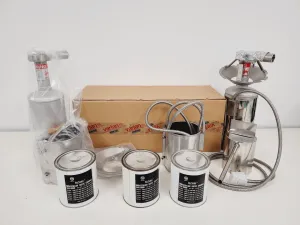 This listing includes two Varian VacSorb Pumps, model 941-6501, along with accompanying accessories. These items recently became surplus to requirements at a university. The condition of each unit is as follows: one Varian VacSorb Pump is brand new and sealed, while the other is used but in good cosmetic condition; it powers up and emits heat, though further testing is not possible in our current facility. Additionally, the package includes three tins of Molecular Sieve Charge (944-0000).